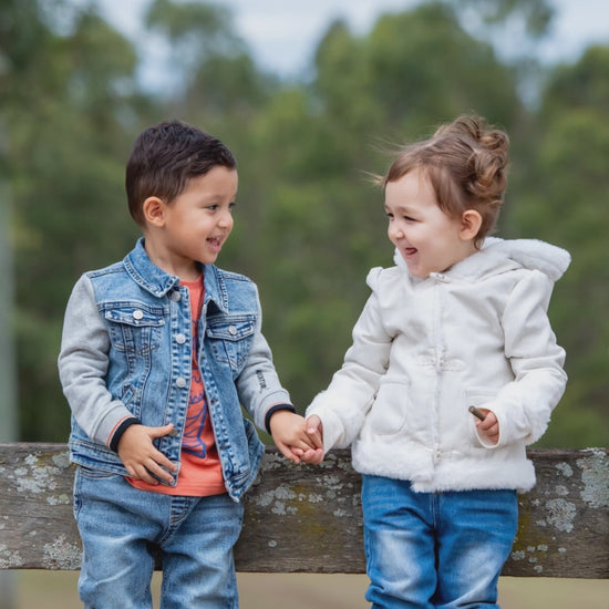 Designed for cool kids, our infant boys Bear Adventure Denim Jacket is one they will love wearing. Acid-wash inspired denim with attached sweatshirt sleeves, this winter wardrobe staple pairs seamlessly with any outfit and provides protection from windy chills without compromising on quality or style.